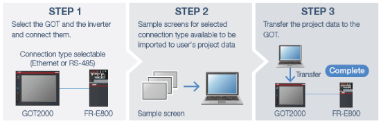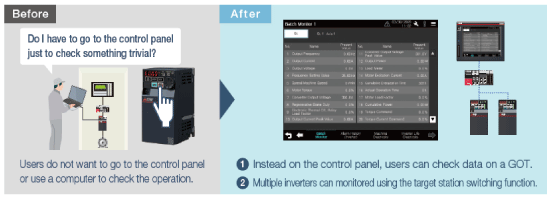 Enhanced compatibility between inverters and the GOT (human machine interface) brings various benefits to users.
