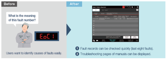 When a fault occurs, it is possible to identify the cause immediately, which contributes to downtime reduction.