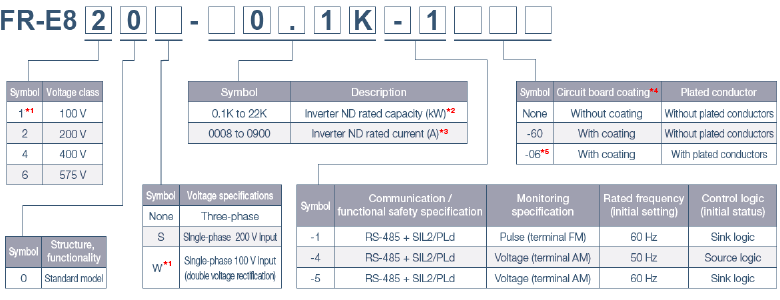 | FR-E820S-[]K(E/SCE) | ● | ● | ● | ● | ● | ● | ― | ― | ― | ― | ― | ― | ― |