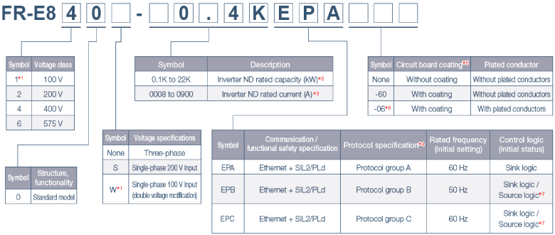 (Refer to the Instruction Manual (Connection) for the switching of the control logic of the inverter, and the Instruction Manual (Function) for the rated frequency.)) - *3: Combination with the specification type -4-60, -4-06, -5-60, or -5-06 is available.