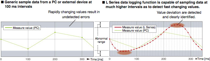 Data is collected during each scan or within millisecond intervals allowing detection of control deviation even at very high speeds. Therefore, identification of errors can be conducted faster and in more detail.