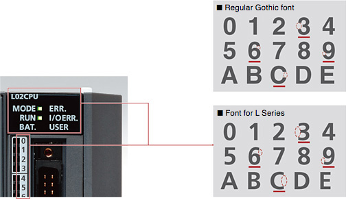 ![]() | The characters are thick enough, however the numbers "3, 6, 8, 9" and the alphabet "C" are not clearly distinguishable because the spacing indicated with a red circle is not large enough. |