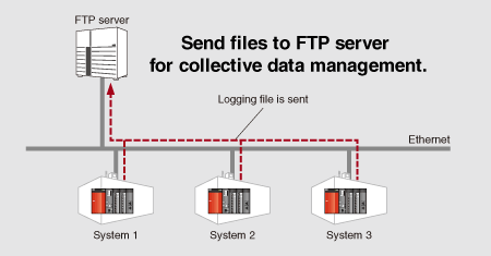 Data logging files stored on the SD memory card can be sent to FTP server just by making a simple setting with the Logging configuration tool.