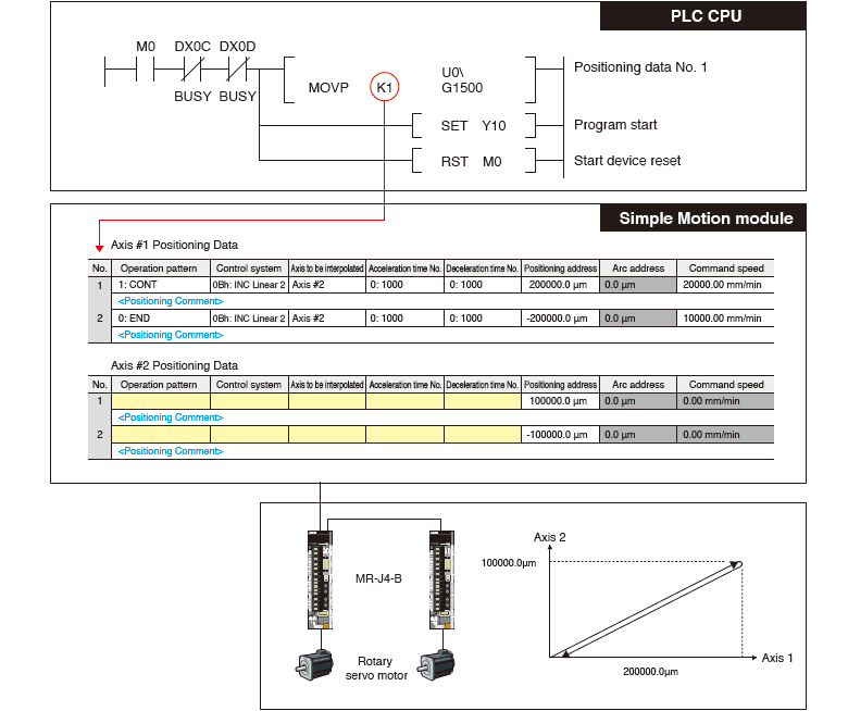 The Simple Motion module starts operation from the designated positioning data No. and continues operation until the operation pattern ends.