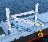 The crane for loading and unloading work on the ship's deck controls the three axes of swiveling, lifting and lowering.