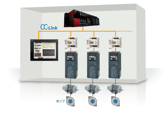 By using CC-Link to connect to the Mitsubishi Energy Measurement Unit, centralized power management and visualization can be easily achieved.