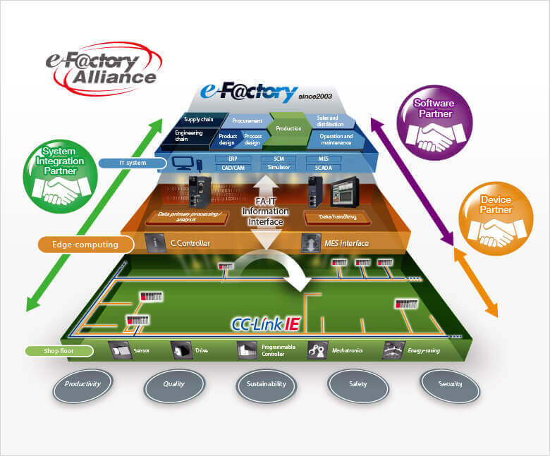 Mitsubishi Electric Factory Automation (Mitsubishi Electric FA) มุ่งมั่นยกระดับโซลูชันเครื่องจักรโรงงานอัจฉริยะและบริการพัฒนาระบบโรงงาน 5G เพื่อพัฒนามาตรฐานการผลิต เพิ่มประสิทธิภาพ และสร้างความปลอดภัยให้วงการอุตสาหกรรมไทย จึงจับมือกับเหล่าพันธมิตรที่เข้าร่วมโปรแกรม FA partnership (e-F@ctory Alliance) ที่มีความโดดเด่นในอุตสาหกรรมและเทคโนโลยีด้านต่าง ๆ เพื่อที่จะนำเสนอโซลูชันกระบวนการผลิตอัจฉริยะที่ดีที่สุดให้กับลูกค้าของเรา