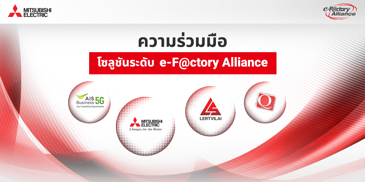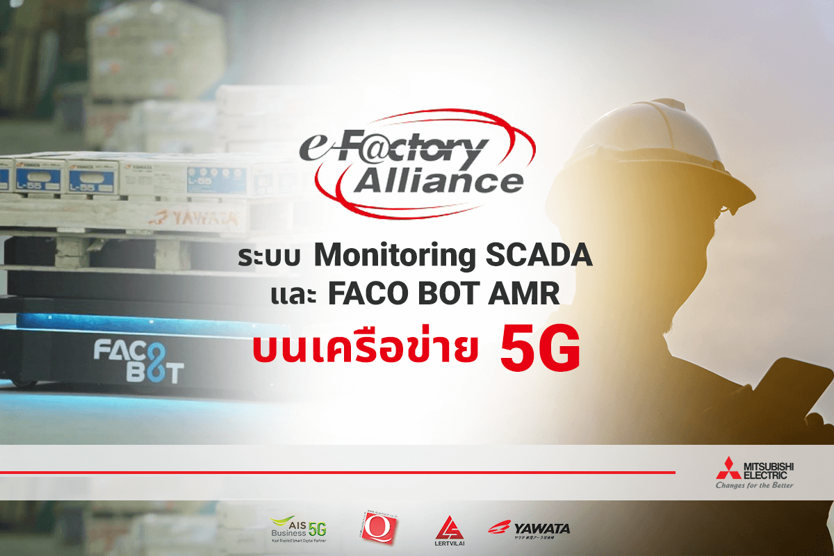 โรงงาน YAWATA (ประเทศไทย) เป็นหนึ่งในตัวอย่างความสำเร็จที่ Mitsubishi Electric และ e-F@ctory Alliance พาร์ทเนอร์ร่วมมือพัฒนาโซลูชัน Monitoring SCADA และ FACOBOT AMR โดยมีการทำงานสื่อสารของระบบบนเครือข่าย AIS 5G ทำให้เกิดการผลิตแบบอัตโนมัติที่มีประสิทธิภาพสูง และสะดวกต่อการใช้งานในยุค 4.0
